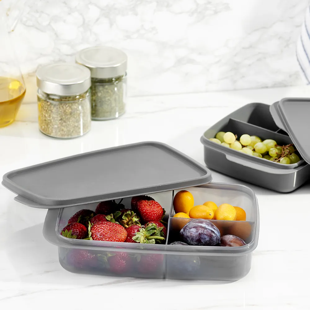 Boîte repas rectangulaire compartimentée 1,1L en plastique PP sans BPA, compatible micro-ondes, idéale pour stocker et réchauffer les aliments au quotidien