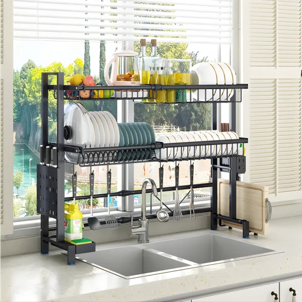 Optimisez votre espace avec cet égouttoir surélevé conçu pour s’installer directement au-dessus de l’évier. Ses deux niveaux permettent de ranger assiettes, verres, bols, couverts et accessoires tout en gardant votre plan de travail parfaitement dégagé.