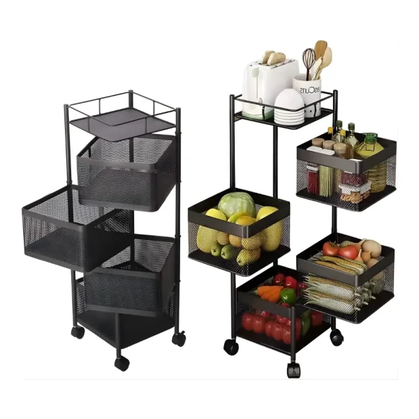Organisez votre cuisine, salon ou garde-manger avec cette étagère mobile en métal, dotée de paniers profonds et aérés. Grâce à ses 4 niveaux, elle offre un espace généreux pour fruits, légumes, bouteilles, ustensiles ou produits secs.