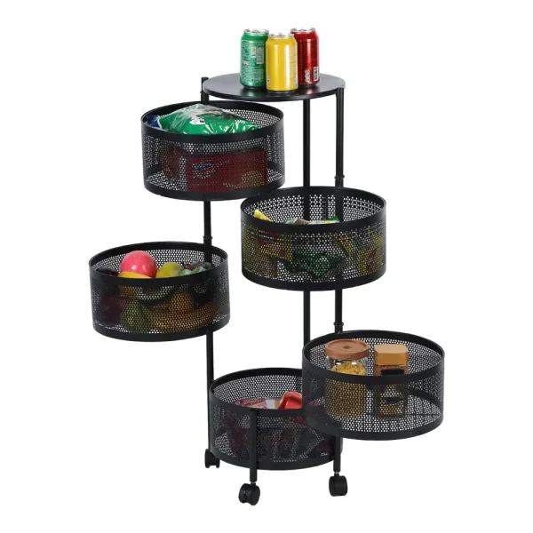 Organisez votre cuisine, salon ou garde-manger avec cette étagère mobile en métal, dotée de paniers profonds et aérés. Grâce à ses 4 niveaux, elle offre un espace généreux pour fruits, légumes, bouteilles, ustensiles ou produits secs.
