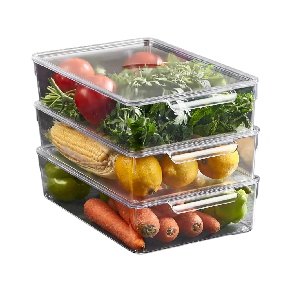 Design: Bac transparent empilable avec couvercle pour une conservation et une organisation optimales