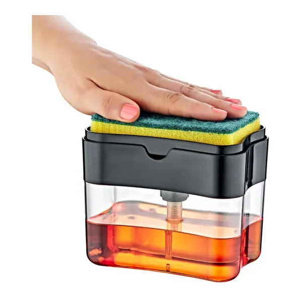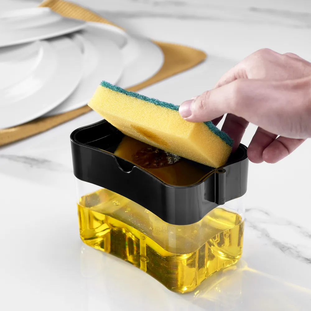 Distributeur de savon pour vaisselle avec éponge intégrée, idéal pour le lavage quotidien en cuisine