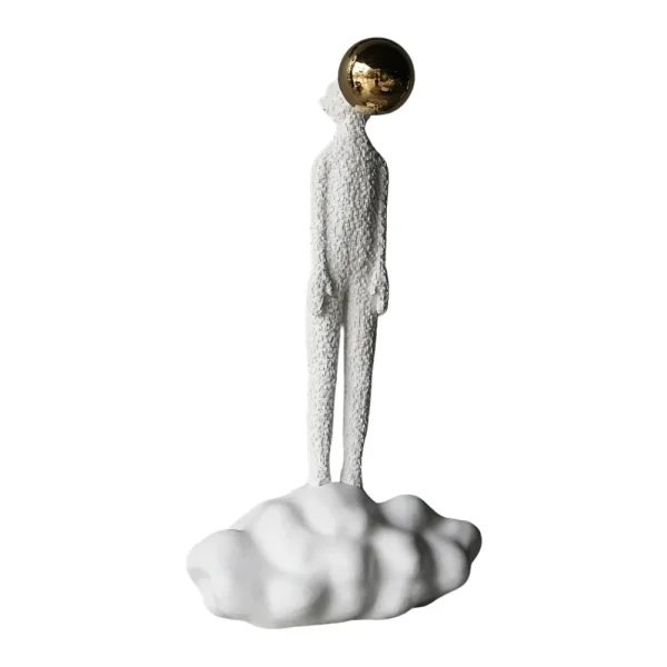 Cette sculpture en résine de 75 cm incarne poésie et modernité. Son personnage élancé, dressé sur un nuage, semble contempler l’infini avec une tête dorée symbolisant la lumière et la réflexion. Alliant minimalisme et émotion, elle apporte une touche artistique et onirique à tout intérieur contemporain.