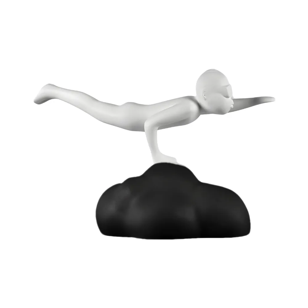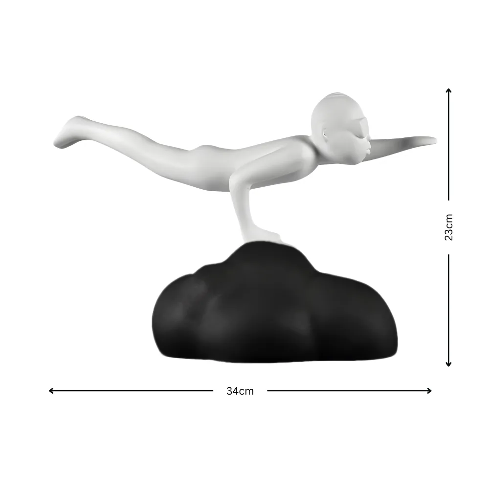 Sculpture décorative contemporaine représentant une silhouette blanche en vol au-dessus d’un nuage noir. Avec son design épuré et minimaliste, elle évoque la liberté, l’imagination et la légèreté. Réalisée en résine mate, cette pièce artistique apporte une touche poétique et moderne à tout intérieur, qu’elle soit posée sur une table, une étagère ou un bureau.