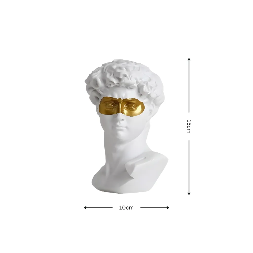 Buste décoratif en résine blanche inspiré de l’art classique, revisité avec une touche contemporaine grâce à son bandeau doré métallique. Cette pièce mêle élégance et modernité, apportant une note artistique et audacieuse à tout intérieur. Idéale sur une console, une étagère ou un bureau pour un effet sculptural raffiné.