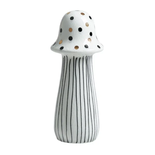 Objet décoratif en céramique blanche avec motifs noirs et dorés. Son design ludique et raffiné ajoute une touche originale et élégante à vos étagères, tables basses ou espaces modernes.