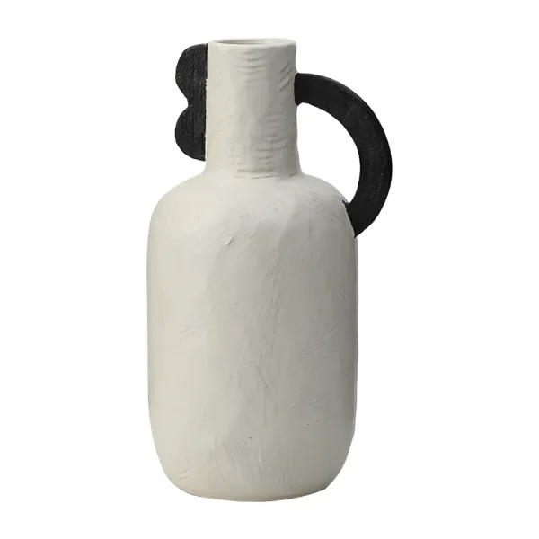 Vase en céramique blanche au design artisanal, rehaussé d’une anse noire contrastante. Son style épuré et moderne apporte une touche contemporaine et naturelle à votre décoration intérieure.