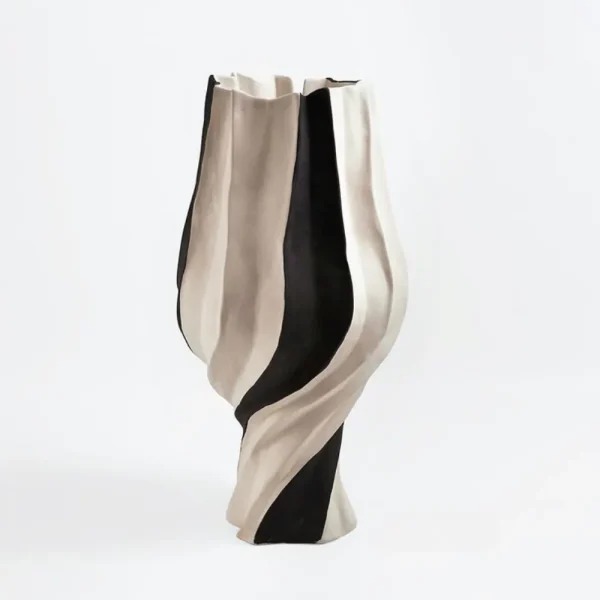 Pièce décorative moderne en céramique, façonnée à la main avec des courbes élégantes et un contraste noir et blanc saisissant. Parfait pour sublimer un salon, une étagère ou une table basse avec une touche artistique et contemporaine.