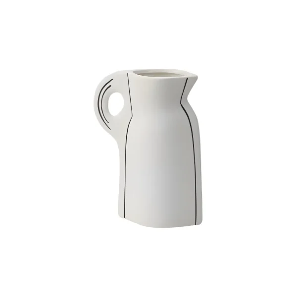 Vase en céramique blanche au design épuré, rehaussé de fines lignes noires pour une touche graphique élégante. Parfait pour une déco moderne et raffinée, seul ou accompagné de fleurs séchées.