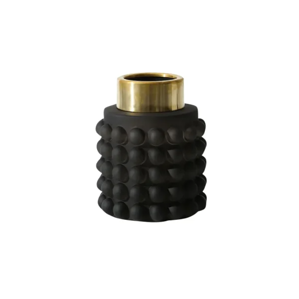 Ce vase noir au fini mat incarne l’élégance moderne. Sa texture sculptée et son col doré créent un contraste raffiné qui attire le regard. À la fois audacieux et sophistiqué, il apporte une touche de caractère à votre décoration, que ce soit sur une console, une table ou une étagère contemporaine.