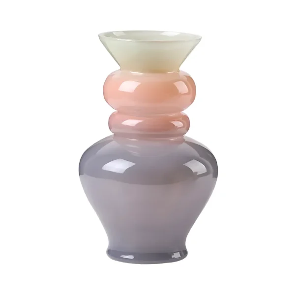 Ce vase en verre séduit par son mélange harmonieux de formes et de couleurs douces. Son design sculptural, combinant des tons pastel et une texture brillante, en fait une pièce décorative pleine de charme. Idéal pour ajouter une note élégante et artistique à votre intérieur, il s’impose comme un véritable accent design, même sans fleurs.