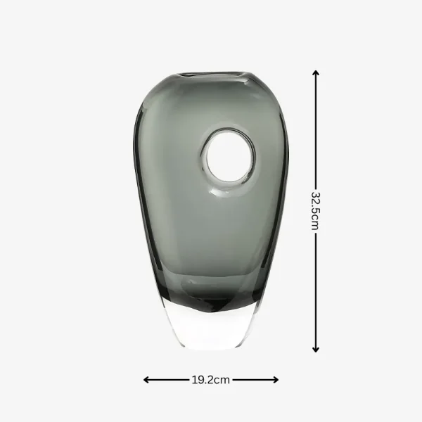 Ce vase en verre au design contemporain captive par sa forme ovale ajourée et sa teinte fumée élégante. Minimaliste et sophistiqué, il joue avec la lumière et les transparences pour créer un effet visuel unique. Placé sur une console, une table ou une étagère, il apporte une touche d’art moderne et de raffinement à votre intérieur.
