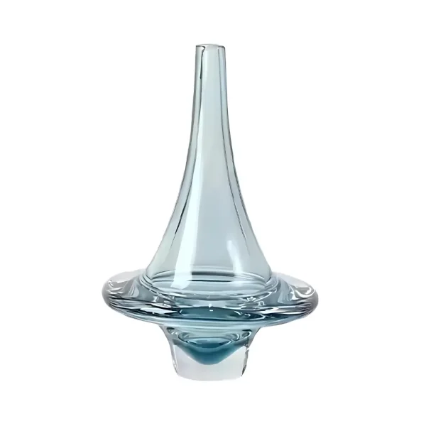 Ce vase en verre bleu clair séduit par sa silhouette fine et sa base évasée, rappelant une œuvre de design moderne. Sa transparence et ses reflets délicats créent un jeu de lumière apaisant. Élégant seul ou associé à d’autres pièces en verre, il apporte une note contemporaine et raffinée à tout intérieur.