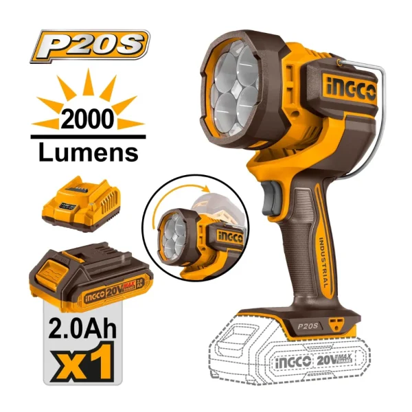 Utilisation: Éclairage longue portée pour chantiers et travaux en intérieur/extérieur