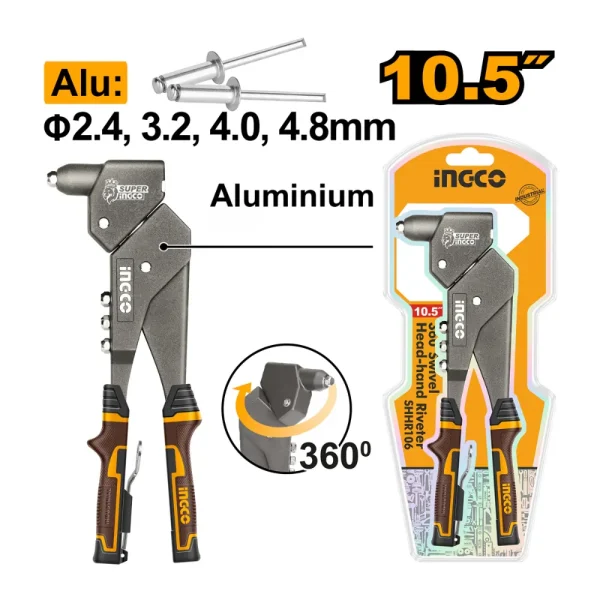 Type : pince à riveter à tête pivotante 360°