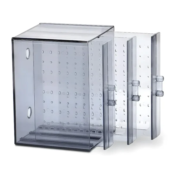 Design: Boîte transparente avec plusieurs tiroirs coulissants pour une organisation claire