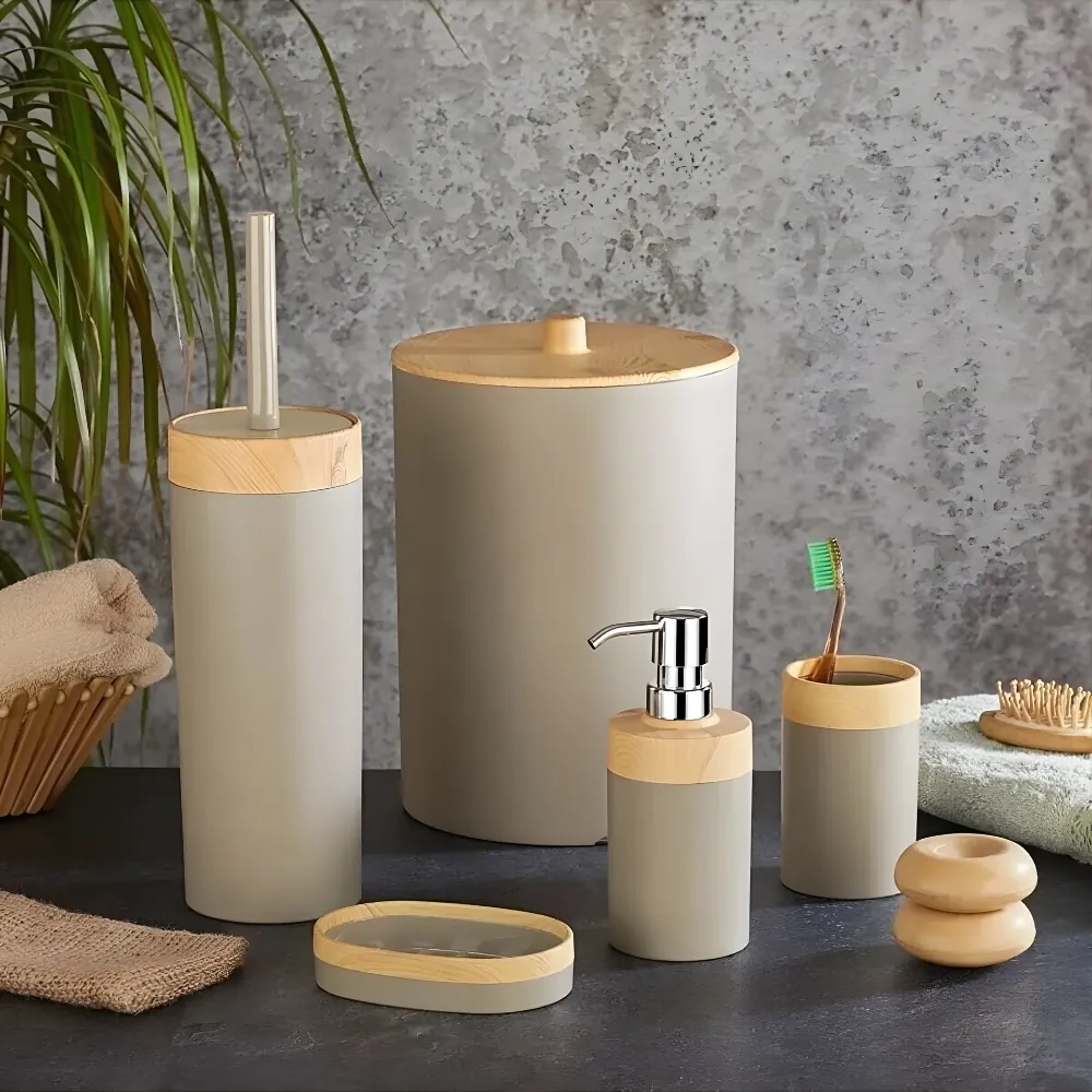 Design: Finition style bois avec lignes épurées pour une salle de bain moderne